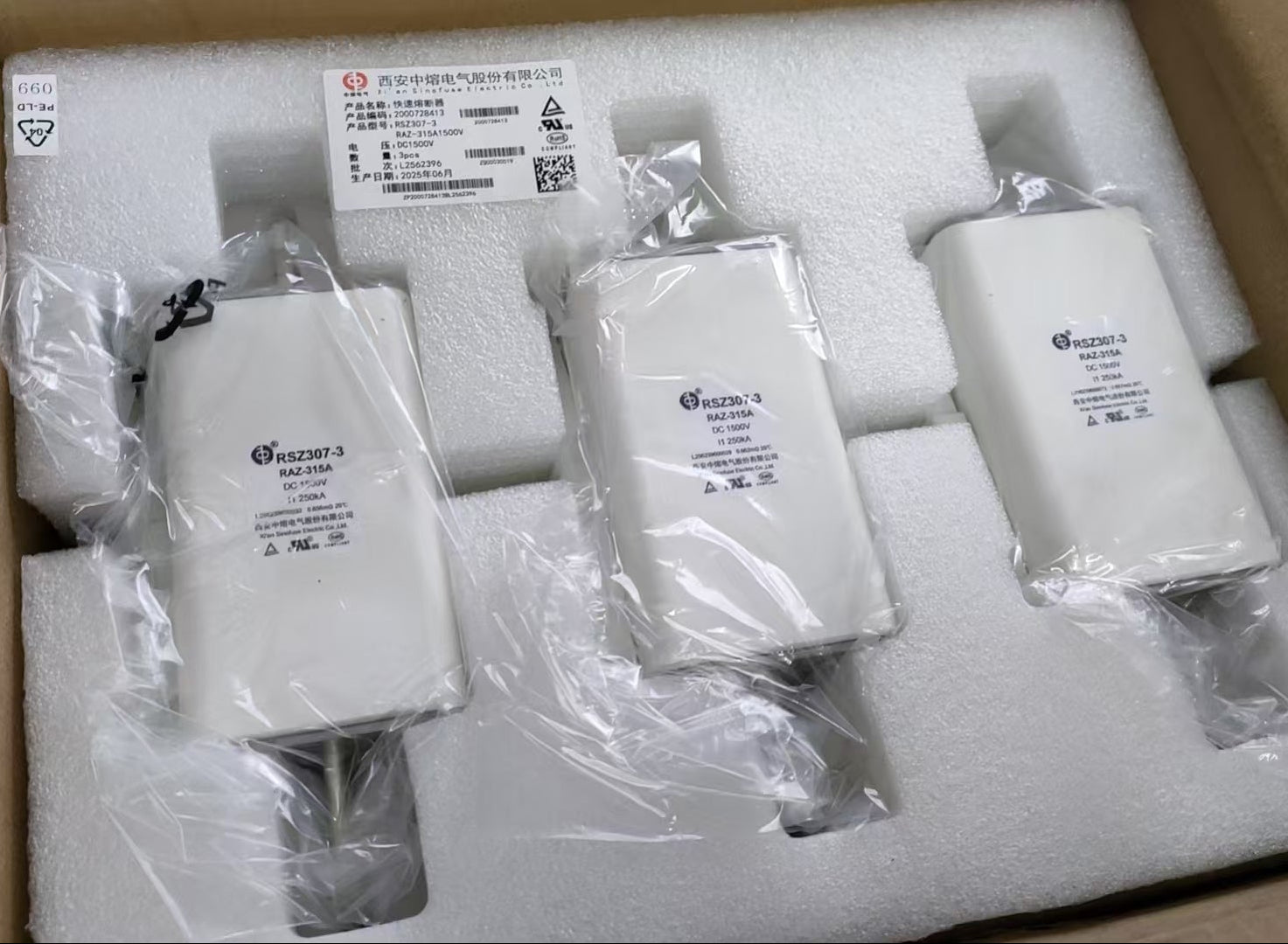 SINOFUSE RAZ 315A 1500V DC Fuse, PV Solar Protection, RSZ307-3 - Pack of 12